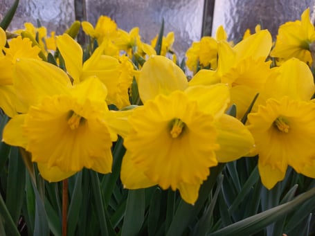 Ein Blumengruß zu Valentin, frisch abgeschnittene Narzissen oder Tulpen aus eigenem Anbau